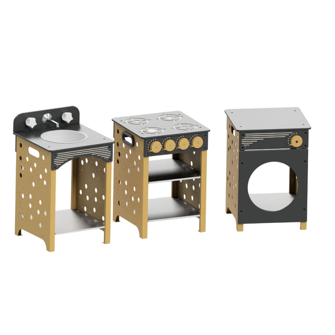Designed with an Australian Pre-School environment in mind, the Sink can be used for imaginative, messy and collaborative play. Children will enjoy the actual turning taps and stainless steel sink.