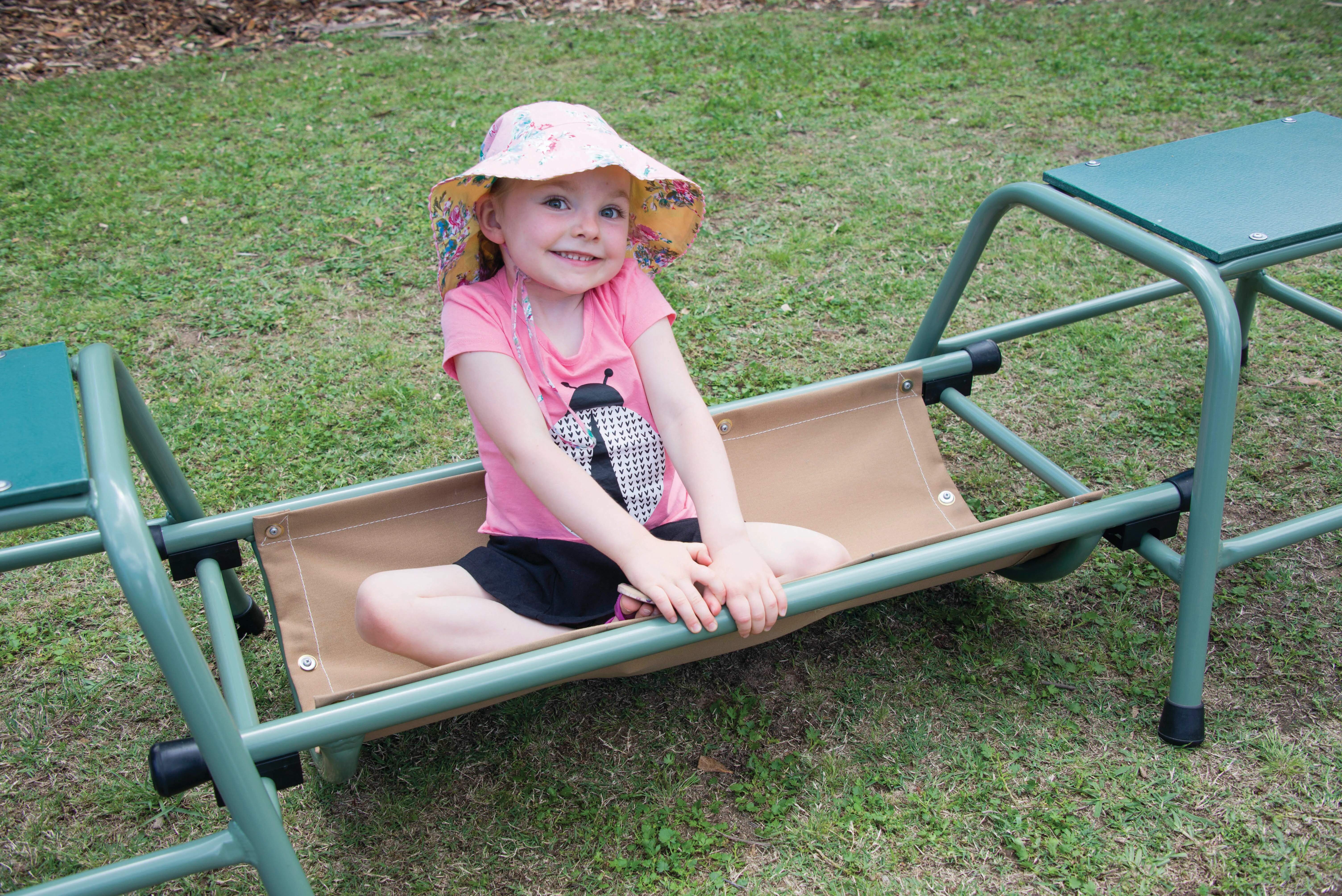 The Sling Crosser is an engaging and unique play piece designed to create the opportunity for play and rest.