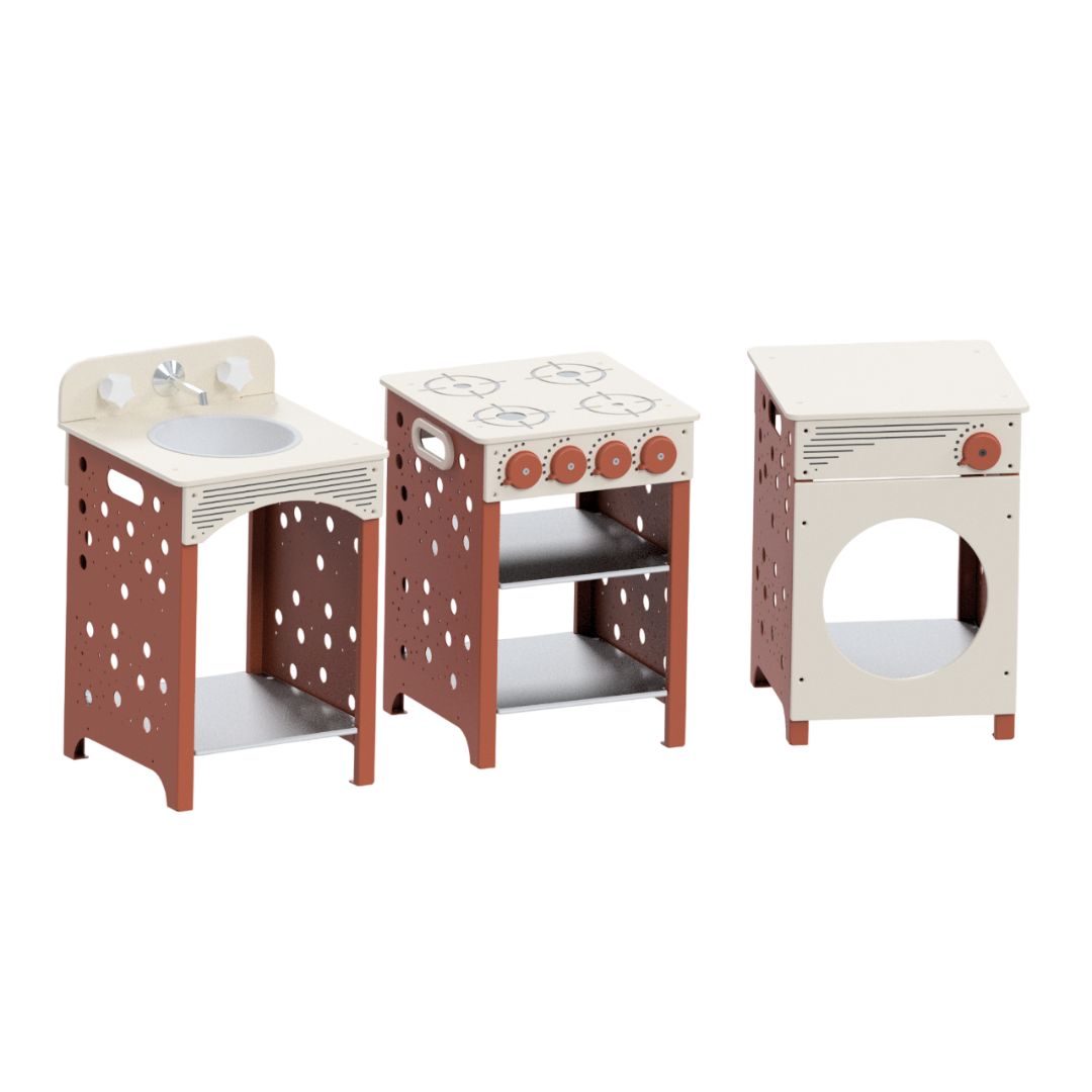 Eucalyptus Kitchen Set, although intended to be used as furniture, is designed in accordance with AS4685:2121 & NZS5828:2015 to ensure safe play as well.
