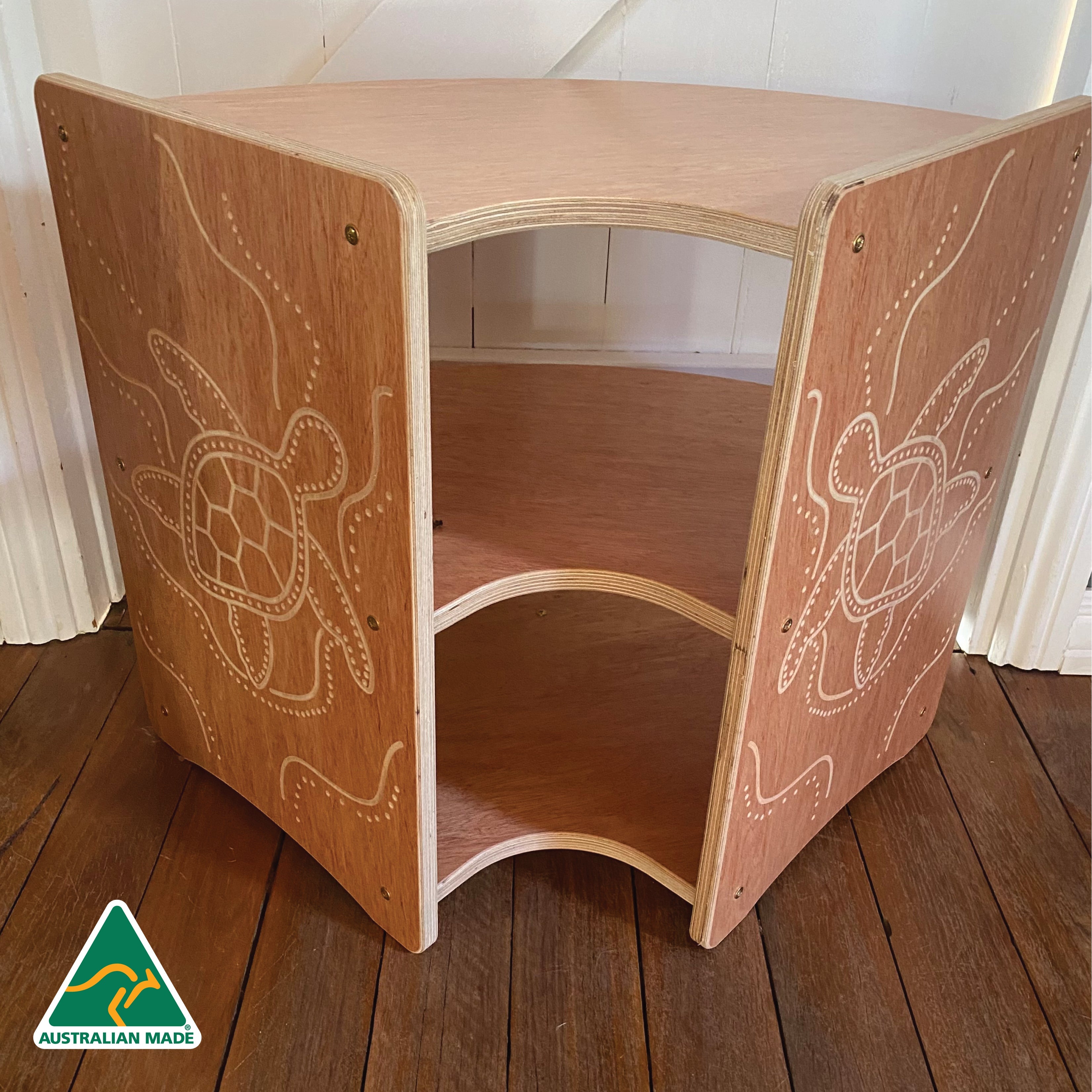 Bring the beauty of Indigenous art and Australian craftsmanship into your space with our curved Indigenous Turtle Shelf. This unique curved shape shelf features an exquisite turtle artwork by the talented Indigenous artist Shareen Clayton, celebrating the deep connection between nature and culture.