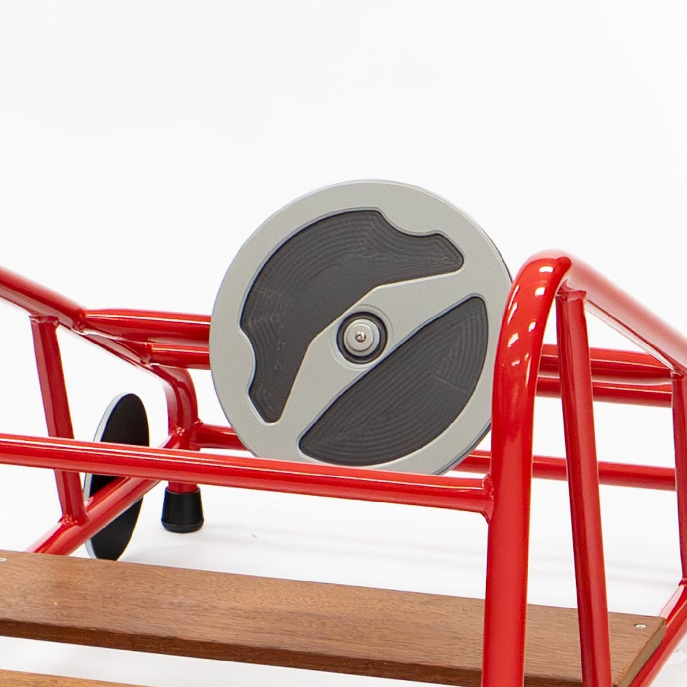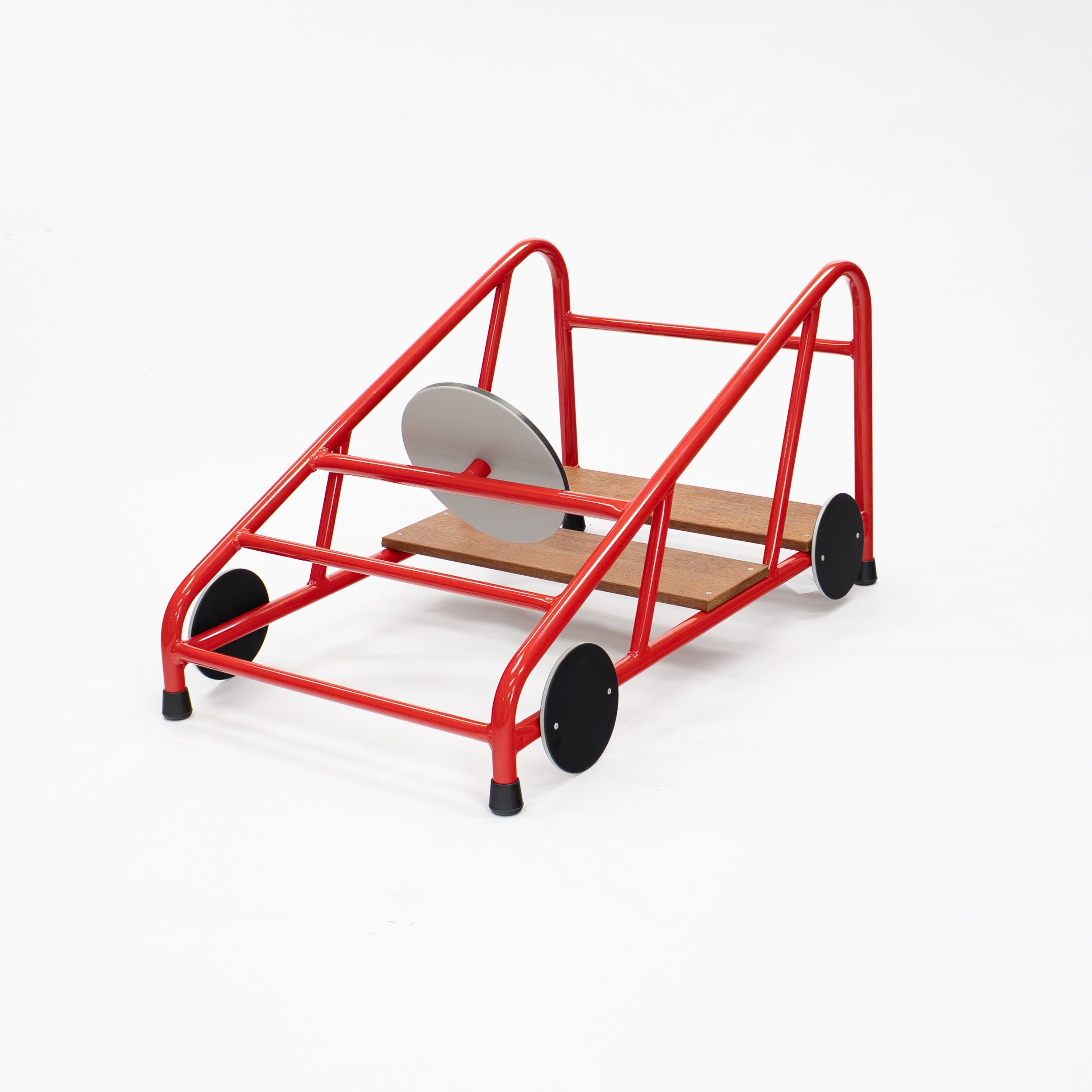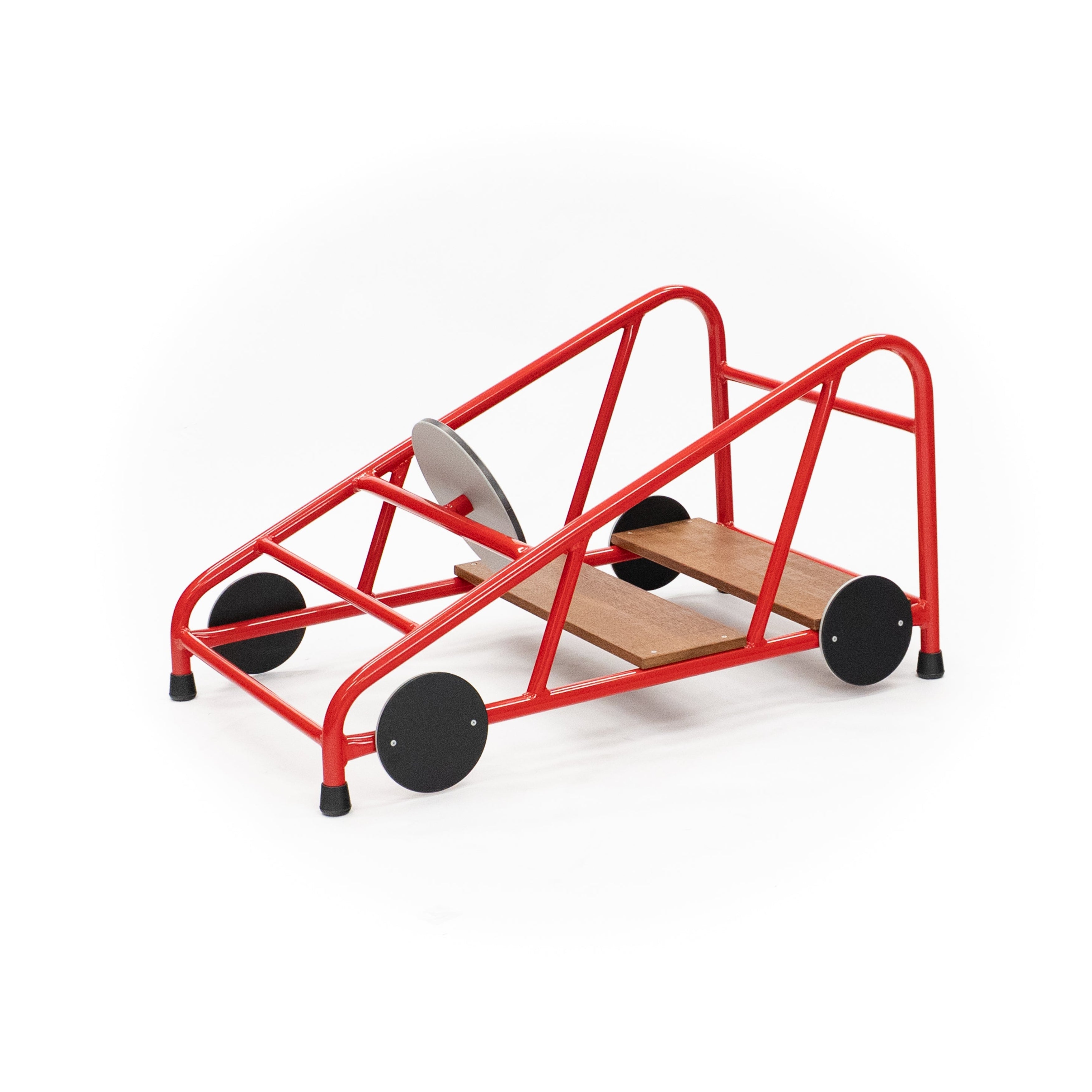 Vroooom!!! Kids will be racing for the race car. Use as a standalone piece or join up other pieces to the rungs. Features 2 seats and a bright steering wheel. Made from strong and lightweight powder-coated aluminium. Measures 110cm long x 65cm wide x58cm high.
