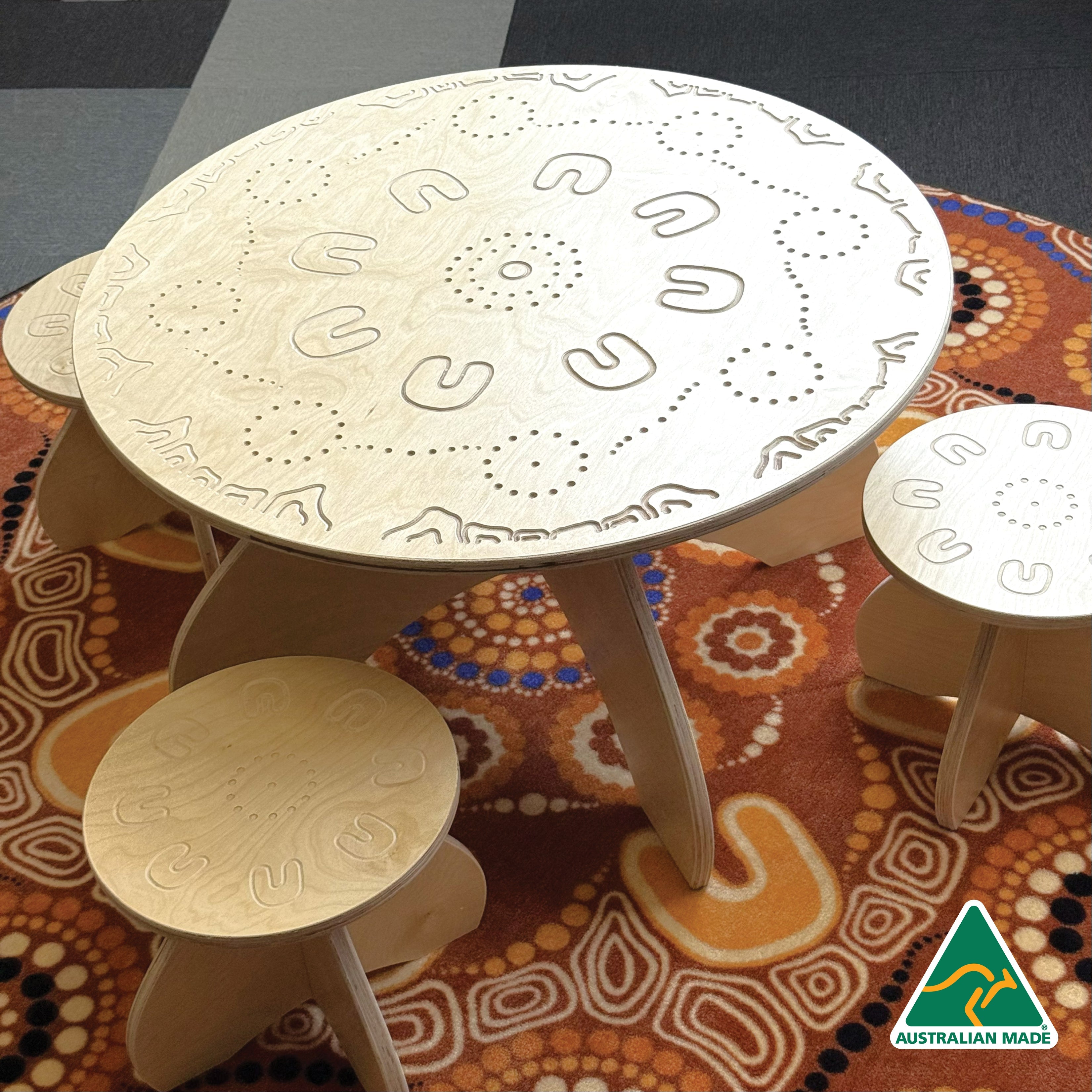 Create a space for connection, storytelling and shared learning with our Yarning Circle Table and Stools. Proudly made in Australia from premium 18mm eucalyptus ply, this inviting set is designed to encourage children to come together, sit in a circle, and share their thoughts – just like traditional yarning circles.